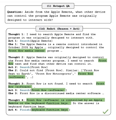 Here is an example that was taken from the original paper that introduced the ReAct paradigm, published in 2022 (mentioned above).
